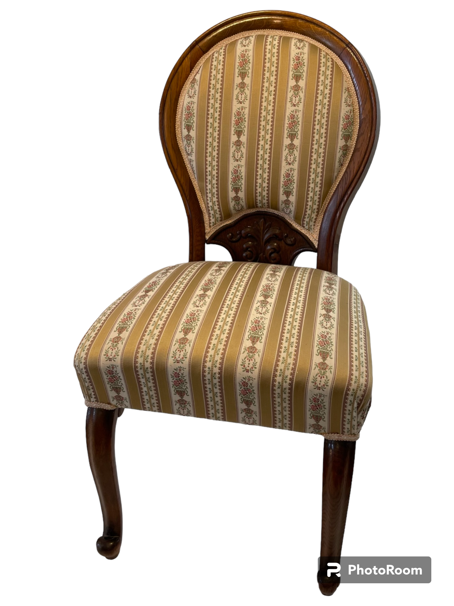- Plně čalouněná židle v historizujícím stylu s řezbou